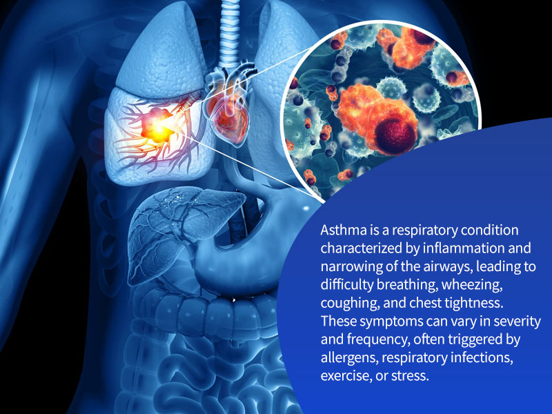Asthma is a chronic respiratory condition that affects the airways in the lungs. It is a condition in which the airways become inflamed, narrow, and produce extra mucus, making it difficult to breathe. Asthma can range from mild to severe and cause discomfort and distress in those suffering from it.